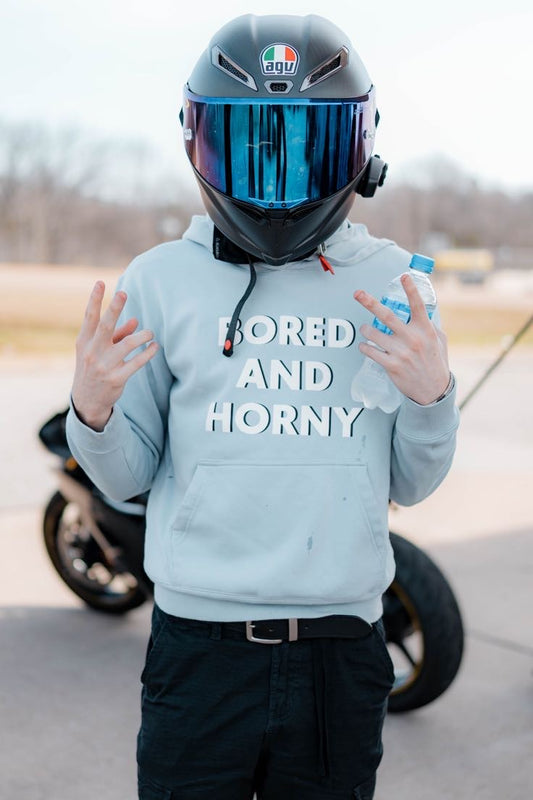 Light Grey Blue Bored and Horny Hoodie